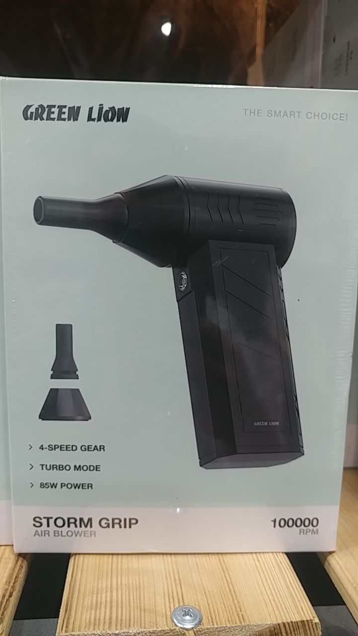 دمنده و بلوور شارژی گرین لاین مدل Storm Grip با توان ۸۵ وات و سرعت ۱۰۰۰۰۰ دور در دقیقه دارای حالت توربو و تنظیم سرعت ۴ حالته