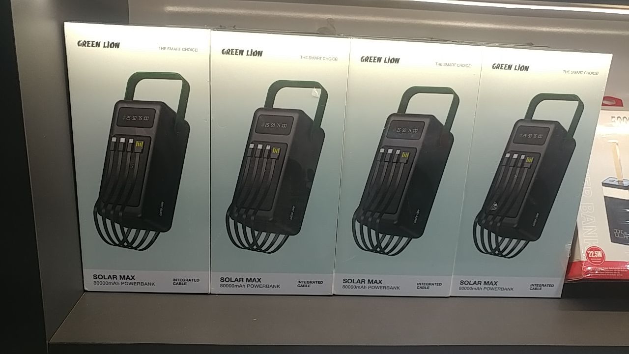 پاوربانک ۸۰۰۰۰ میلیآمپر گرین لاین مدل Solar Max - دارای پنل خورشیدی، کابلهای متصل، دسته نگهدارنده و نمایشگر LED میزان شارژ