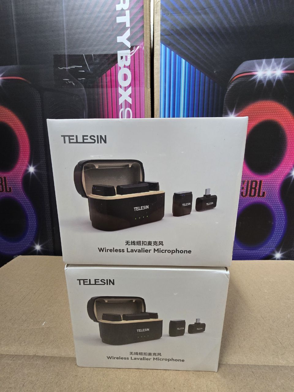 ست میکروفون یقه ای بی سیم تلسین (TELESIN) مدل P5 - دارای دو فرستنده، یک گیرنده (رابط Type-C) و کیس شارژ همراه با نشانگر LED وضعیت باتری (مناسب برای گوشیهای اندروید و لپتاپ)