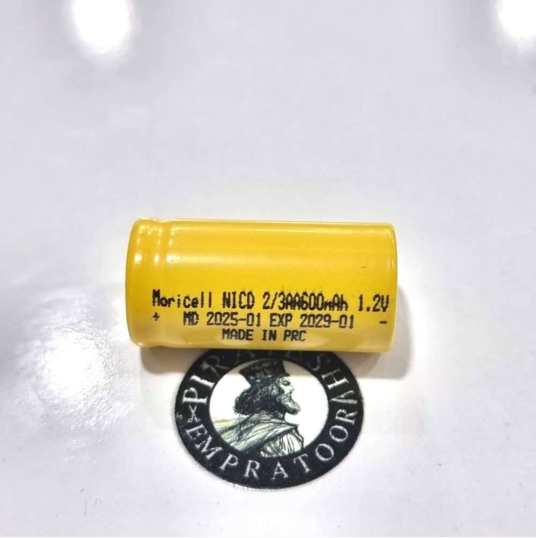 باتری قابل شارژ مورسل (Mori Cell) از نوع نیکل کادمیوم (Ni-Cd) با سایز 2/3AA؛ دارای ولتاژ ۱.۲ ولت و ظرفیت ۶۰۰ میلیآمپر ساعت. این باتری با ابعادی کوتاهتر از باتریهای قلمی معمولی، گزینهای ایدهآل برای استفاده در دستگاههای ریشتراش، برخی چراغقوهها، تلفنهای بیسیم و تجهیزات پزشکی است که نیاز به جریان پایدار و قابلیت شارژ مجدد دارند.