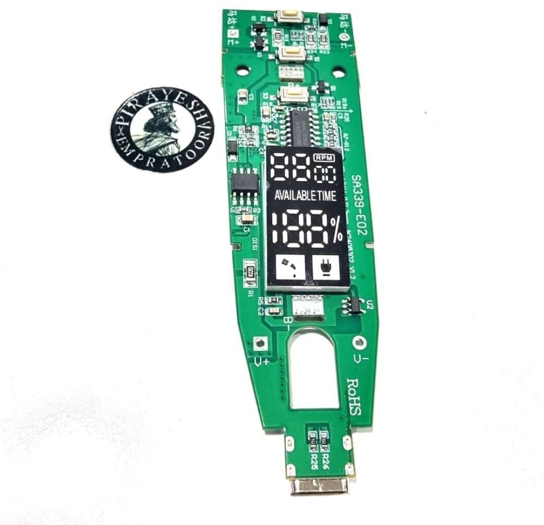 برد الکترونیکی یدکی (Mainboard) اورجینال، سازگار با ماشینهای خطزن محبوب کیمی (Kemei) مدل KM-5027 و دیاسپی (DSP) مدل 90286؛ این برد مجهز به نمایشگر دیجیتال LED جهت نمایش دقیق میزان شارژ باتری، سرعت چرخش موتور (RPM) و نشانگر نیاز به روغنکاری است. همچنین دارای درگاه شارژ USB و کلیدهای کنترل سرعت میباشد. این قطعه برای تعمیر دستگاههایی که دچار اختلال در روشن شدن، شارژ نشدن یا نقص در نمایشگر شدهاند، انتخابی عالی برای بازگرداندن عملکرد هوشمند و دقیق به ماشین اصلاح شماست.
