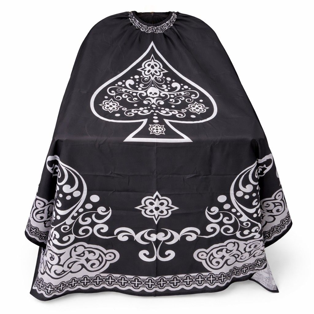 پیشبند اصلاح و آرایشگاهی یقهکش طرح اسپیک (♠) رنگ مشکی | شنل اصلاح مو و ریش