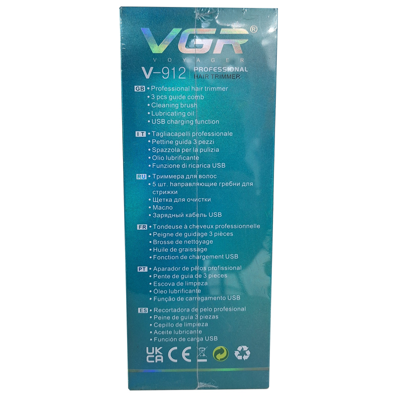 ماشین اصلاح حرفهای وی جی آر مدل V-912 از سری محصولات پرقدرت و محبوب برند VGR است که برای استفادهی شخصی و سالنی طراحی شده است. این دستگاه با تیغههای استیل ضد زنگ و موتور بادوام خود، اصلاحی دقیق، سریع و بینقص را فراهم میکند.