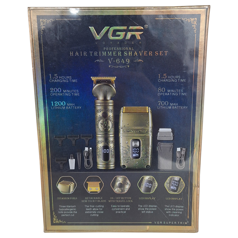 ست ماشین اصلاح وی جی آر مدل V-649 یکی از حرفهایترین مجموعههای اصلاح از برند محبوب VGR است که شامل ماشین اصلاح خطزن و شیور فویلی میباشد. این ست با طراحی فوقالعاده زیبا و بدنهی کاملاً فلزی، ترکیبی از قدرت، ظرافت و دوام را در اختیار کاربران قرار میدهد.