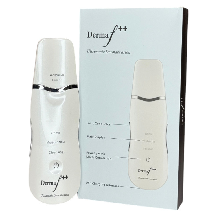 دستگاه Derma F++ Ultrasonic Dermabrasion یک ابزار پیشرفته و خانگی برای پاکسازی، لایهبرداری، آبرسانی و جوانسازی پوست است که با فناوری امواج اولتراسونیک و یونهای مثبت و منفی، پوست را از عمق منافذ تمیز کرده و به جذب بهتر مواد مغذی کمک میکند.