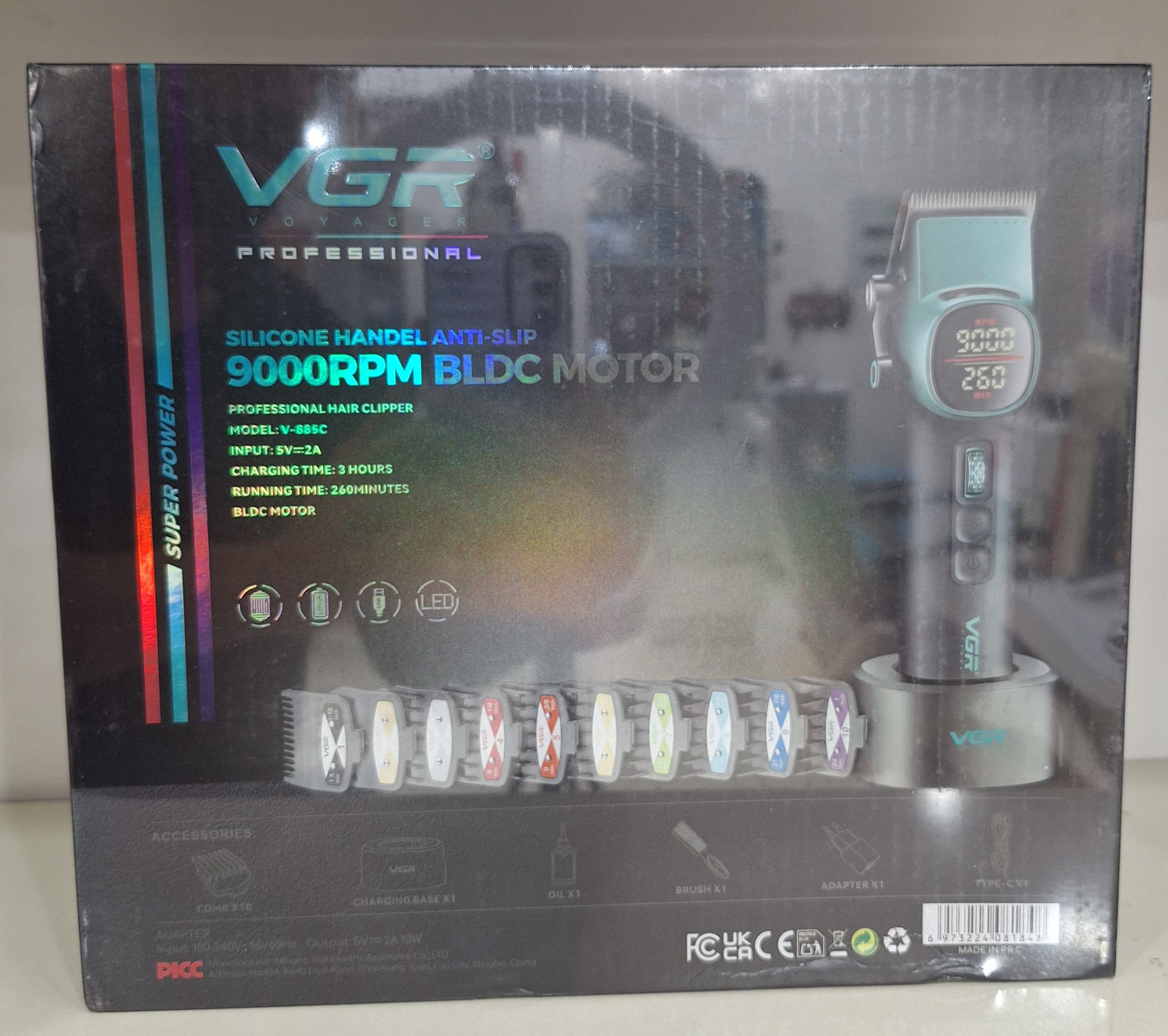 ماشین اصلاح حرفهای ویجیآر مدل VGR V-885C با موتور BLDC و تیغه سرامیکی DLC