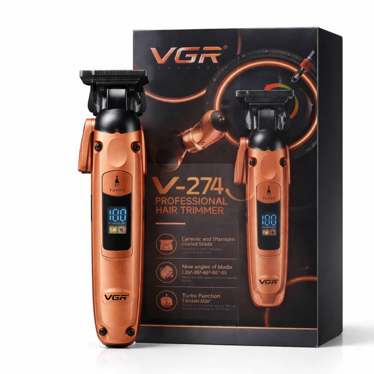 ماشین اصلاح موی حرفهای توربو دار VGR V-274 | تیغه سرامیک و تیتانیوم، شارژی