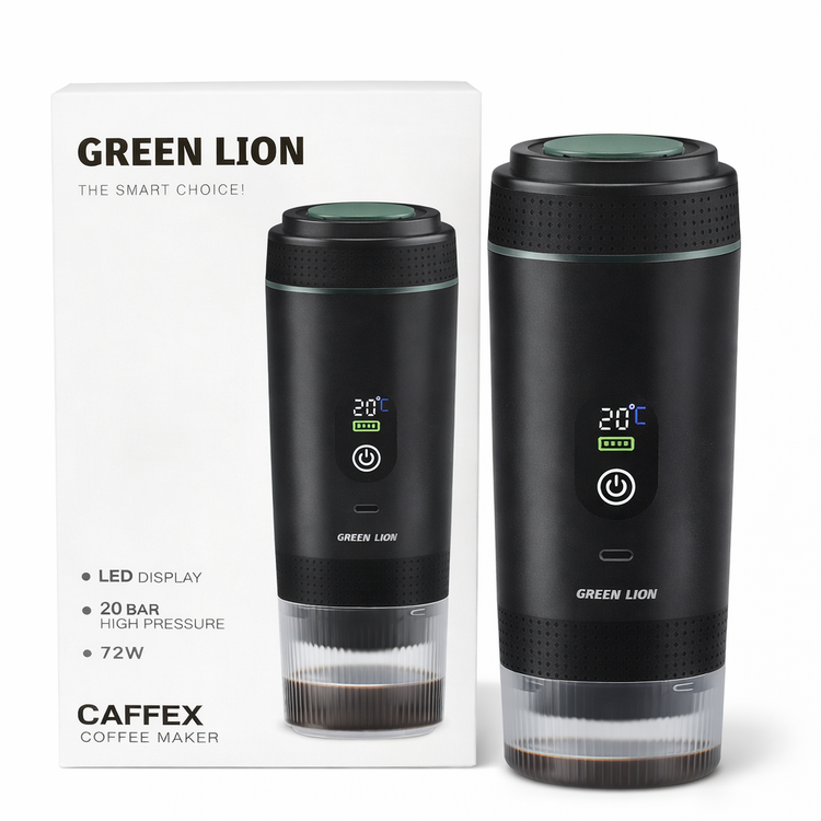 قهوهساز قابل حمل گرین لاین Green Lion CAFFEX | اسپرسوساز شارژی 20 بار با نمایشگر LED