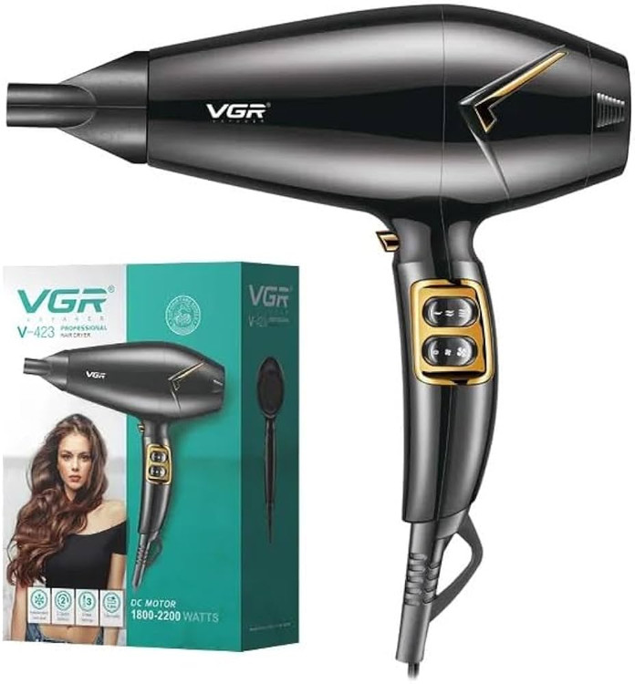 سشوار حرفهای VGR مدل V-423 یک انتخاب قدرتمند و قابلاعتماد برای استفاده شخصی و سالنهای آرایشگری است. این سشوار با موتور DC پرقدرت و توان واقعی 1800 تا 2200 وات، امکان خشککردن سریع موها را بدون آسیب فراهم میکند.