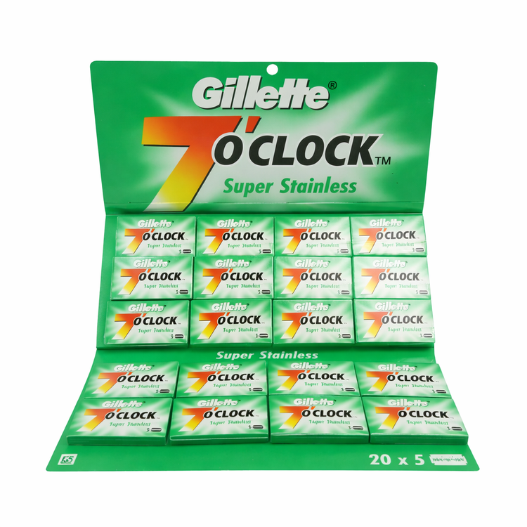 تیغ اصلاح Gillette 7 O’Clock Super Stainless سبز یکی از محبوبترین و پرفروشترین تیغهای کلاسیک دو لبه در بین آرایشگران و مصرفکنندگان حرفهای است. این مدل به دلیل برندگی بالا، دوام مناسب و اصلاح نرم، انتخابی مطمئن برای اصلاح صورت و خطگیری دقیق محسوب میشود.