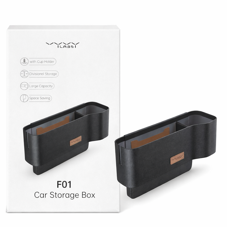 باکس نظمدهنده خودرو YILASEY مدل F01 یک Car Storage Box است که برای مرتبکردن وسایل داخل ماشین طراحی شده. طبق اطلاعات درجشده روی بستهبندی، این محصول جالیوانی دارد و فضای داخلی آن تقسیمبندی شده است تا بتوانی وسایل را جدا و مرتب نگه داری. همچنین روی جعبه تاکید شده که ظرفیت بالا دارد و کمجا (Space Saving) طراحی شده است.