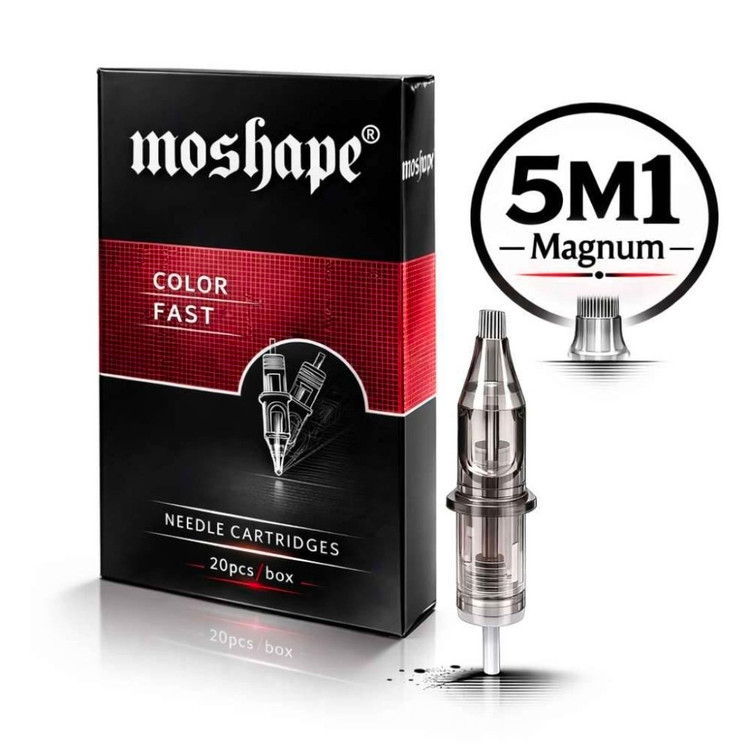 سوزن کارتریج Moshape مدل 5M1 از نوع Magnum (M1) برای رنگگذاری، پر کردن سطح و شیدینگ یکنواخت در تاتو طراحی شده است. آرایش سوزنهای 5M1 باعث میشود انتقال رنگ روانتر انجام شود و برای پر کردن قسمتهای کوچک تا متوسط، بلِند کردن و ایجاد سایههای نرم گزینه مناسبی باشد. گرید 10 نیز برای اجرای کنترلشده و خروجی تمیز در بسیاری از سبکها کاربرد دارد. بدنه شفاف کارتریج دید بهتری هنگام کار ایجاد میکند و طراحی استاندارد آن با اکثر دستگاهها و گریپهای کارتریجی رایج سازگار است.