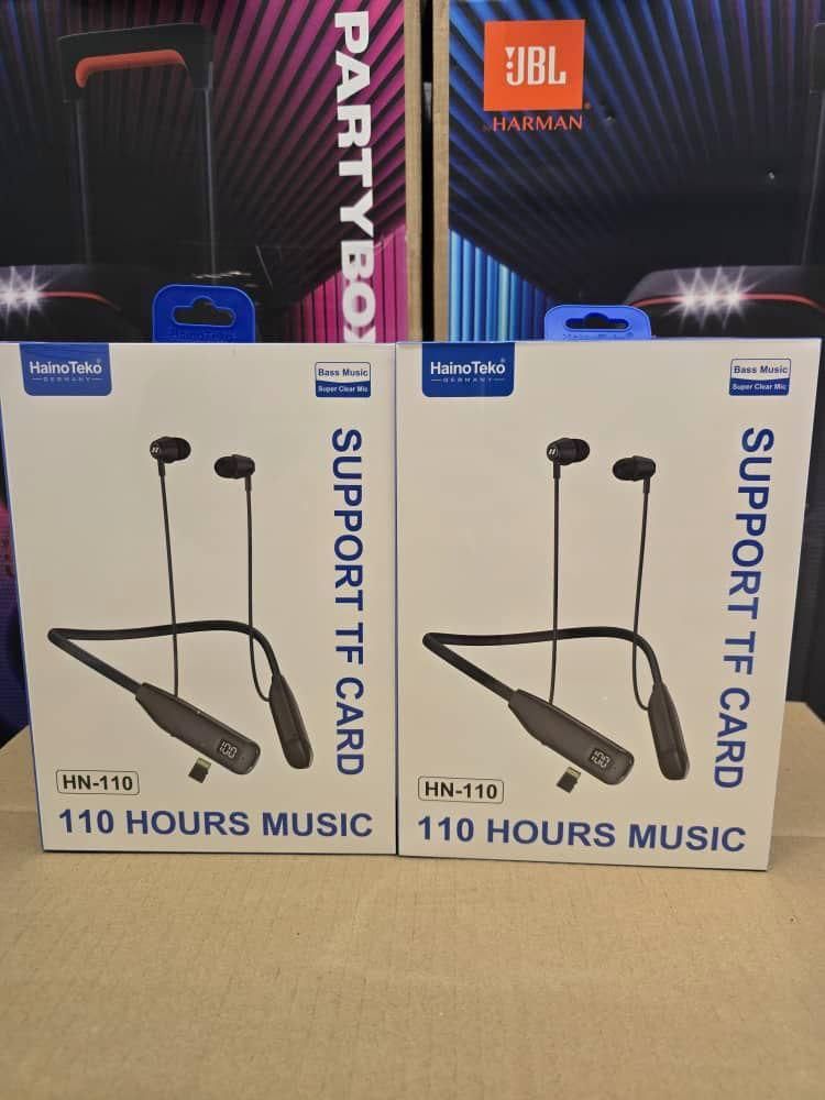 متا دیسکریپشن: هندزفری بلوتوث گردنی HainoTeko مدل HN-110 با پشتیبانی از کارت حافظه TF و طراحی گردنی، مناسب مکالمه و موسیقی با ادعای 110 ساعت پخش روی جعبه. ارسال هر سفارش فقط 1 عدد.
