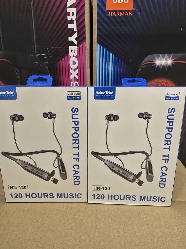 متا دیسکریپشن: هندزفری بلوتوث گردنی HainoTeko مدل HN-120 با پشتیبانی از کارت حافظه TF و طراحی گردنی، مناسب مکالمه و موسیقی با ادعای 120 ساعت پخش روی جعبه. ارسال هر سفارش فقط 1 عدد.