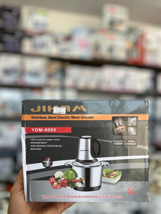 خردکن و چرخ گوشت برقی JIHAM مدل YDM-0095 یک دستگاه چندکاره برای خرد کردن و چرخ کردن انواع مواد غذایی است که برای آمادهسازی سریع مواد و صرفهجویی در زمان طراحی شده است. طبق اطلاعات درجشده روی جعبه، این مدل با توان 1000 وات قدرت کافی برای خرد کردن گوشت و سبزیجات را فراهم میکند و برای کارهای روزمره آشپزخانه گزینه مناسبی است.