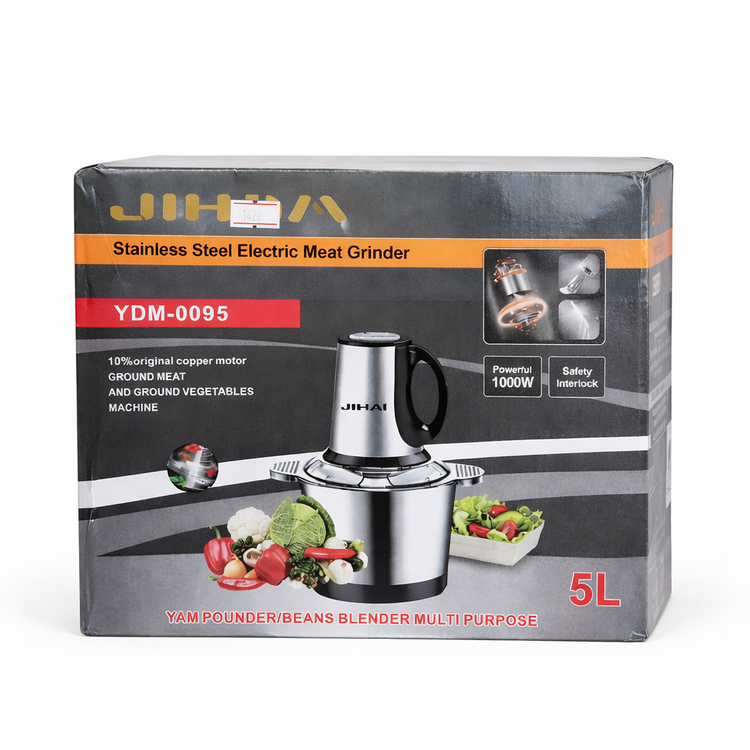 خردکن و چرخ گوشت برقی استیل JIHAI مدل YDM-0095 | توان 1000 وات | کاسه 5 لیتری