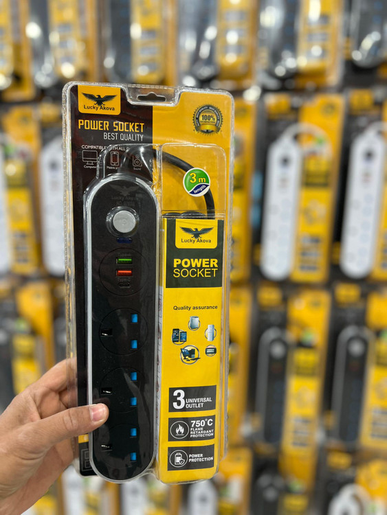 چندراهی برق Lucky Akova مدل Power Socket یک سهراهی کاربردی برای خانه، محل کار و میز کامپیوتر است که با کابل 3 متری، دسترسی راحتتری به برق میدهد و بهجای چند تا شارژر و تبدیل، همه چیز را یکجا جمع میکند. روی بدنه این محصول 3 پریز یونیورسال قرار دارد و علاوه بر آن، خروجیهای شارژ USB هم دارد تا بتوانید گوشی، گجتها و وسایل شارژی را مستقیم شارژ کنید. وجود کلید روشن/خاموش روی بدنه باعث میشود در صورت نیاز، برق را سریع قطع کنید و مدیریت مصرف راحتتر باشد. طبق اطلاعات درجشده روی بستهبندی، بدنه دارای ویژگی مقاومت حرارتی تا 750 درجه و قابلیت Power Protection است و برای استفاده روزمره و مرتب کردن سیمکشیها گزینه مناسبی محسوب میشود.