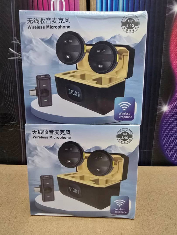 ست میکروفون یقه ای بی سیم (Wireless Microphone) مدل Q8 - فرکانس ۲.۴ گیگاهرتز، دارای دو میکروفون فرستنده (TX)، یک گیرنده با رابط Type-C و کیس شارژ مجهز به نمایشگر دیجیتال درصد باتری